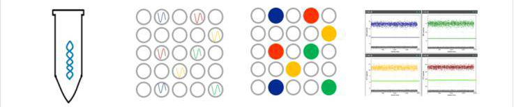 3.dPCR(数字PCR),以DNA为模板,进行PCR扩增,不依赖于ct值和标准曲线,实现PCR的绝对定量。